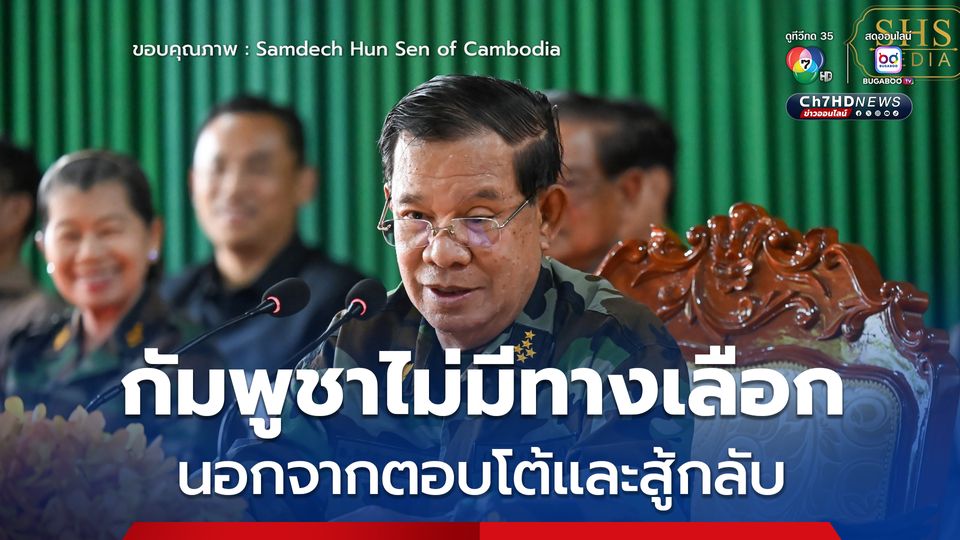 “ฮุน เซน” โพสต์เฟซบุ๊ก หลังการปะทะระหว่าง ไทย-กัมพูชา ที่จุดปราสาทตาเมือน ว่า ทหารไทยเริ่มโจมตี กองทัพกัมพูชาไม่มีทางเลือกนอกจากตอบโต้และสู้กลับ ขอประชาชนกัมพูชาเชื่อมั่นในรัฐบาล และกองทัพของกัมพูชา