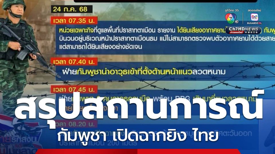 ข่าวเย็นประเด็นร้อน - กัมพูชา เปิดฉากยิงแต่เช้า หลังพระอาทิตย์ขึ้นไปได้ไม่นาน อ้างว่าจำเป็นต้องยิง เพราะไทยรุกราน เหตุการณ์ทวีความรุนแรงขึ้น จนไทยต้องส่งเครื่องบิน F-16 ทิ้งระเบิดใส่ฐานปฏิบัติการ