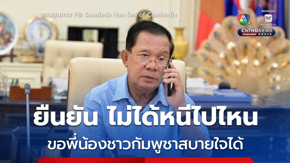 “สมเด็จฯ ฮุน เซน” โพสต์เฟซบุ๊กโต้ข่าวหนีไปประเทศจีน ยืนยันไม่ได้หนีไปไหน ขอพี่น้องชาวกัมพูชาสบายใจได้ ขณะนี้กำลังร่วมบัญชาการกองทัพอยู่