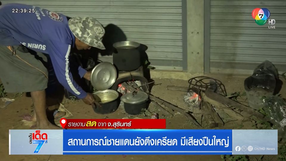 ล่าสุด ทีมข่าวช่อง 7HD ยังปักหลักอยู่ที่จังหวัดสุรินทร์ ค่ำคืนนี้ ชาวบ้านที่อยู่ใกล้แนวปะทะชายแดนไทย-กัมพูชา บางคนขออาสาเฝ้าวิญญาณ ดูแลความปลอดภัยให้คนในหมู่บ้าน ไปติดตามงานสดกับ คุณเกียรติชัย บุญราโส