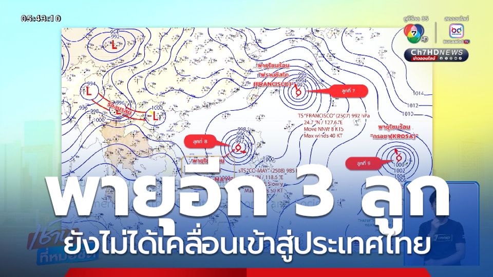 เช้านี้ที่หมอชิต - กรมอุตุนิยมวิทยา ได้ประกาศปิดศูนย์ปฏิบัติการติดตามพายุวิภา ไปแล้ว หลังจากอิทธิพลของพายุผ่านไปแล้ว แต่ล่าสุดได้มีการเผยแพร่ข้อมูลว่าตอนนี้พายุลูกใหม่อีก 3 ลูก