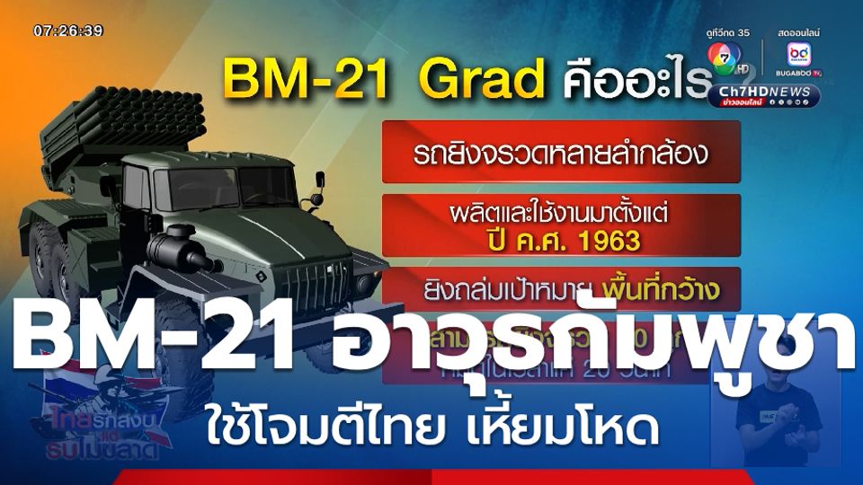 สนามข่าว 7 สี - มาดูอาวุธอย่าง ปืนใหญ่จรวด หรือ BM-21 Grad จากยุคโซเวียต ที่กัมพูชา งัดมาประหัตประหาร เปิดศึกยิงมาในฝั่งไทย ที่ผลของมันเต็มไปด้วยความเหี้ยมโหด ฝ่ากติกาสากล เพราะไปตกทั้งที่บ้านประชาชน โรงพยาบาล