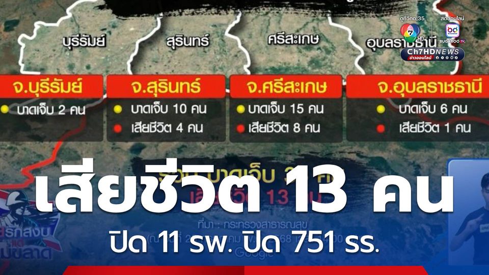 ข่าวเย็นประเด็นร้อน - กระทรวงสาธารณสุข เผยยอดผู้เสียชีวิตจากเหตุปะทะชายแดนไทย-กัมพูชา พรากชีวิตผู้บริสุทธิ์ไปแล้ว 13 คน