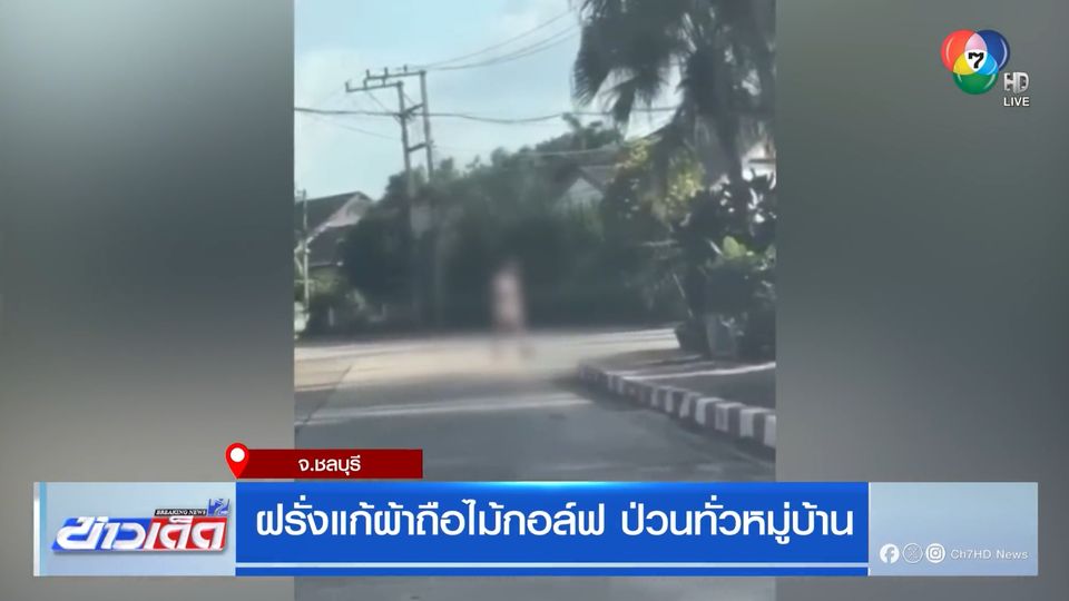 สด ๆ ร้อน ๆ วันนี้ ชายชาวต่างชาติ สัญชาติอเมริกา พักอยู่ในหมู่บ้านหรูย่านดุสิตพัทยา อำเภอบางละมุง จังหวัดชลบุรี ไม่รู้องค์ลงอะไร แก้ผ้าล่อนจ้อน ถือไม้กอล์ฟหวดฟาดทุกสิ่งชี้หน้าท้าทาย และตลอด 3-4 เดือนที่ผ่านมา ชาวต่างชาติคนนี้ก็ทำตัวอันธพาล เป็นบุคคลอันตรายในหมู่บ้าน