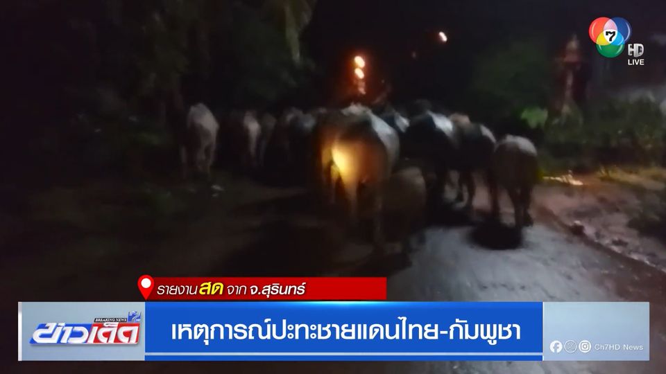 ข่าวเด็ด 7 สี - สถานการณ์ชายแดนไทย-กัมพูชา จังหวัดสุรินทร์ ยังคงตึงเครียด เสียงกระสุนปืนใหญ่อย่างดังขึ้นในช่วงกลางดึกที่ผ่านมา สถานการณ์เป็นอย่างไรติดตามกับคุณเกียรติชัย บุญราโส