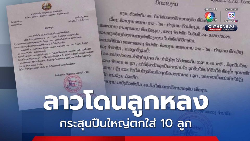 ลาวโดนลูกหลง กระสุนปืนใหญ่ตกใส่ 10 ลูก เร่งตรวจพิสูจน์ให้ชัดว่าเป็นกระสุนจากฝ่ายใด