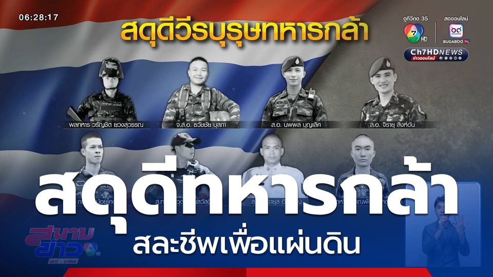 บันทึกเหตุการณ์การปะทะบริเวณชายแดนไทย-กัมพูชา วันที่ 26 กรกฎาคม 2568 มีทหารที่เสียสละชีวิตเพื่อแผ่นดิน รวม 8 นาย ประกอบด้วย