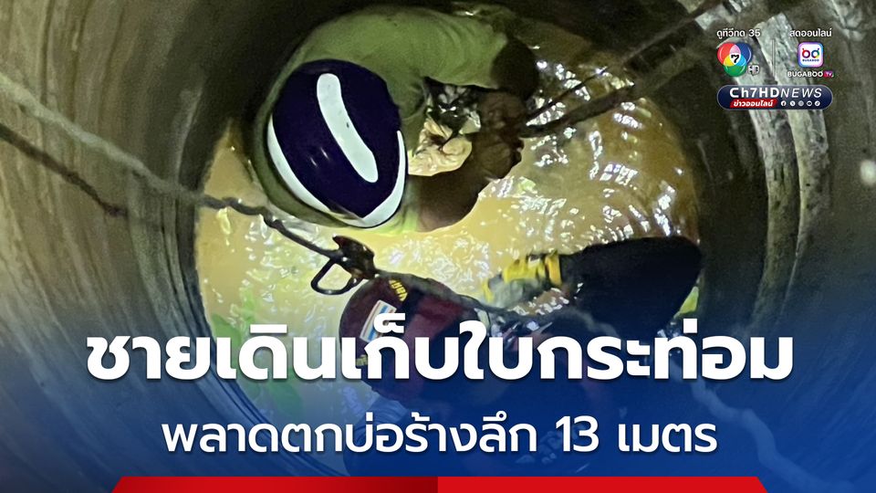 เจ้าหน้าที่ดับเพลิง-กู้ภัย เร่งเข้าช่วยเหลือชายอายุ 51 ปี เดินเก็บใบกระท่อม พลาดตกบ่อร้างลึก 13 เมตร อาศัยขอบท่อคอนกรีตเพียงเล็กน้อยพยุงร่างไม่ให้จมน้ำ