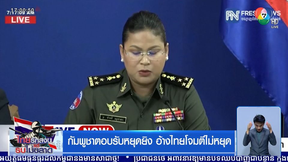 เจาะประเด็นข่าว 7HD - โฆษกรัฐบาลกัมพูชา แถลงตอบรับข้อเสนอหยุดยิง แต่ยังคงกล่าวหาไทยโจมตีกัมพูชาก่อน และยังอ้างไม่มีเจตนาโจมตีพลเรือนและโรงพยาบาลในไทย