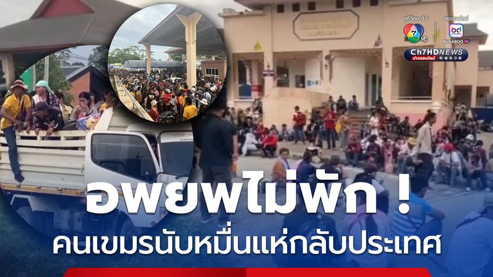 นับหมื่นคน ! ชาวกัมพูชาตกค้าง อพยพเดินทางข้ามกลับประเทศไม่ทัน ต้องวางข้าวของ กระเป๋าเสื้อผ้า นอนค้างแรมตากยุง รอประตูด่านบ้านแหลมเปิด