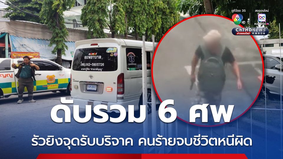 จบชีวิตหนีผิด ! ชายคลั่งใช้ปืนกระบอกเดียวกันยิงตัวเอง หลังรัวยิงในจุดรับบริจาคสิ่งของส่งชายแดน ใกล้ตลาดสดชื่อดัง ย่านจตุจักร ทำให้ รปภ.เสียชีวิต 4 คน แม่ค้าเสียชีวิต 1 บาดเจ็บ 2 คน