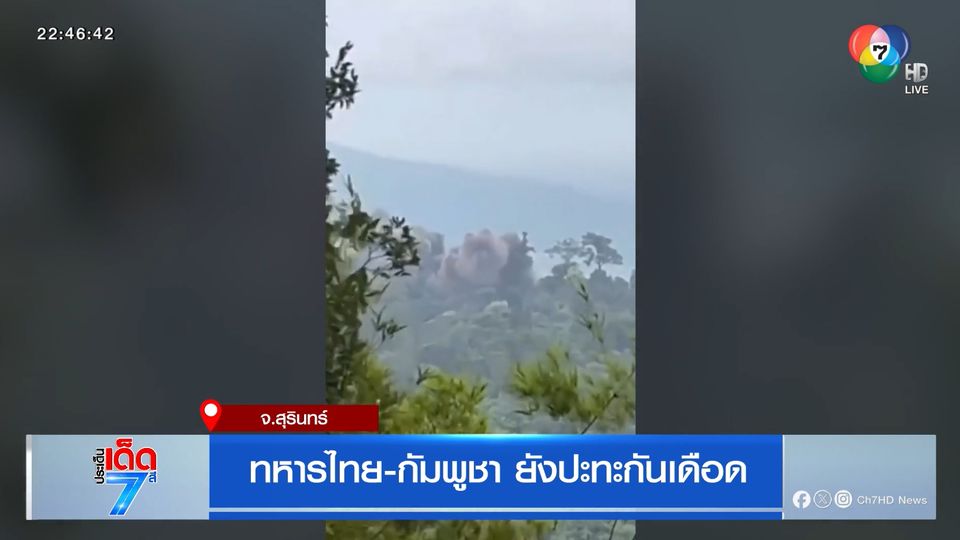 ประเด็นเด็ด 7 สี - ส่วนการสู้รบระหว่างทหารไทยและกัมพูชาเข้าสู่วันที่ 5 แล้ว วันนี้ต่างฝ่ายใช้อาวุธหนักยิงถล่มกันตั้งแต่เช้ามืดจนถึงช่วงบ่าย โดยเฉพาะชายแดนด้านจังหวัดสุรินทร์