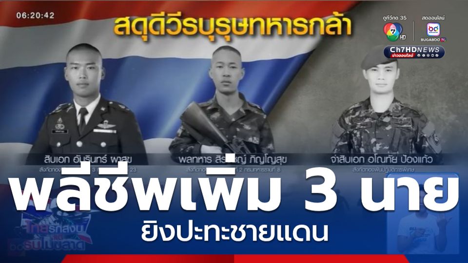 ยอดทหารที่เสียชีวิต ที่กองทัพภาคที่ 2 สรุปออกมาเมื่อวานนี้ มีทหารพลีชีพ จากการยิงปะทะที่ปราสาทตาควาย และปราสาทตาเหมือนธมเพิ่ม 3 นาย สิบเอก อัมรินทร์ ผาสุข กองพันทหารราบที่ 3 กรมทหารราบที่ 23