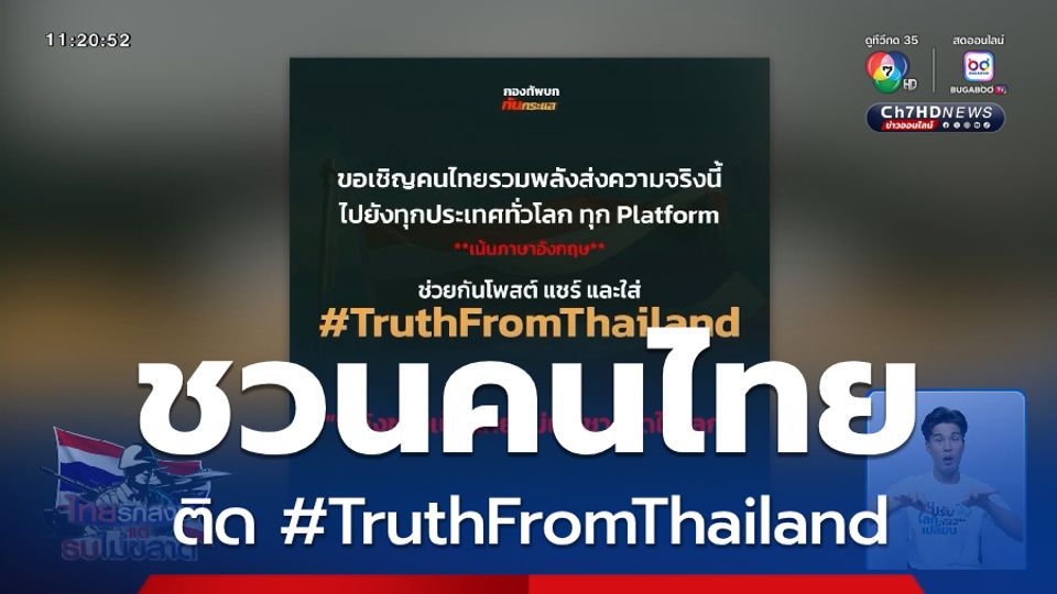 โดยให้ทุกคนช่วยกันเปิดเผยเรื่องราวข้อเท็จจริงที่เกิดขึ้นว่า ไทยเป็นผู้ถูกกระทำก่อน ช่วยกันแชร์โพสต์ข้อมูลที่ถูกต้อง ไม่ใช่ข่าวปลอม และใส่ #TruthFromThailand