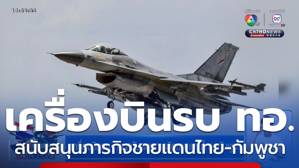 ห้องข่าวภาคเที่ยง - กองทัพอากาศออกแถลงการณ์สนับสนุนภารกิจของกองทัพบก ตั้งแต่วันที่ 24 -28 กรกฎาคม ที่ผ่านมา ด้วยฝูงบิน F-16 และ เครื่องบินรบกริพเพน ขณะที่มีการโจมตีเป้าหมายทางทหารของทางกัมพูชา