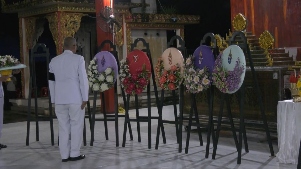ในการนี้ พระบรมวงศานุวงศ์ ทรงพระกรุณาโปรดเกล้าโปรดกระหม่อม และโปรดให้ผู้ว่าราชการจังหวัดอุบลราชธานี เชิญพวงมาลาพระราชทาน และพวงมาลาประทาน วางที่หน้าหีบศพด้วย