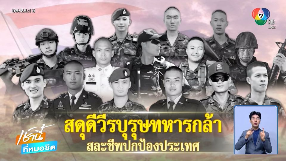 เช้านี้ที่หมอชิต - กองทัพบก รายงานยอดทหารกล้าสละชีพเพื่อชาติ ปกป้องอธิปไตย ในการสู้รบชายแดนไทย-กัมพูชา เมื่อคืนวันที่ 28 กรกฎาคม ทหารเสียชีวิตเพิ่ม 4 นาย