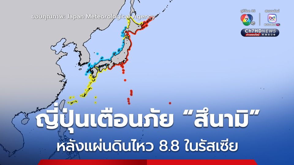 เกิดแผ่นดินไหวขนาด 8.8 ที่ความลึก 20.7 กม. นอกชายฝั่งรัสเซีย เกิดสึนามิสูง 4 เมตร ทำให้อาคารบ้านเรือนเสียหาย ขณะที่ทางญี่ปุ่น-ฟิลิปปินส์ ได้ประกาศเตือนภัย “สึนามิ” แล้ว