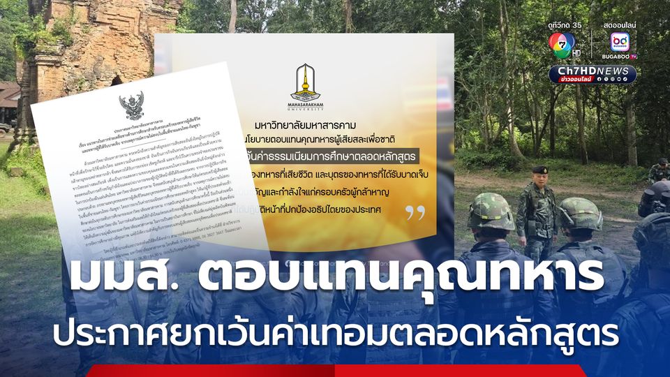 สำหรับประกาศดังกล่าว ทางมหาวิทยาลัยมหาสารคาม (มมส.) ได้ประกาศเมื่อวันที่ 1 ส.ค. 68 ลงนามประกาศโดย รองศาสตราจารย์ประยุกต์ ศรีวิไล อธิการบดีมหาวิทยาลัยมหาสารคาม เรื่อง แนวทางในการช่วยเหลือทางด้านการศึกษาสำหรับตรอบครัวของทหารผู้ชีวิต และทหารผู้ที่ได้รับบาดเจ็บ จากเหตุการณ์ความไม่สงบในพื้นที่ขายแดนไทย-กัมพูชา