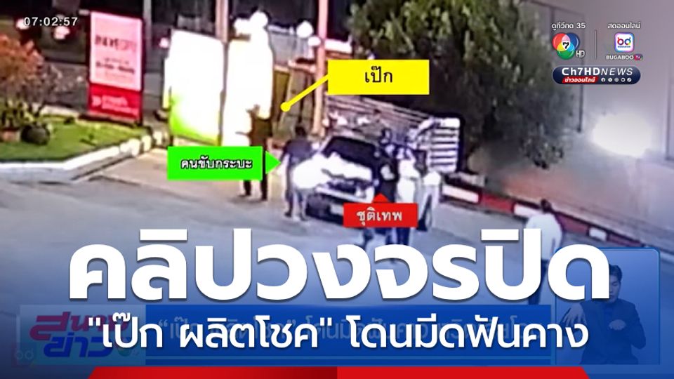 สนามข่าว 7 สี - "เป๊ก ผลิตโชค" นักร้องหนุ่มชื่อดัง ถูกชายใช้มีดฟันคางเป็นแผลลึกเลือดอาบ โดยหลังเกิดเหตุผู้ก่อเหตุไม่ได้หลบหนี ยืนมอบตัวกับตำรวจ อ้างทำไปเพราะป้องกันตัว ขณะที่ทีมข่าวไปได้กล้องวงจรปิดบันทึกภาพเหตุการณ์ได้ตั้งแต่ช่วงก่อนเกิดเหตุ และช่วงเกิดเหตุมาให้ดู แต่เราไม่ตัดสินว่าใครเป็นฝ่ายเริ่มก่อน