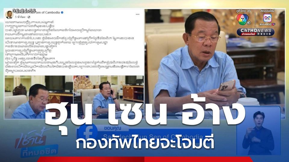 เช้านี้ที่หมอชิต - สมเด็จฯ ฮุน เซน ท่าจะฟุ้งซ่านหนัก เล่นสงครามผ่านโซเชียลให้ร้ายป้ายสี อ้างว่า กองทัพไทยจะโจมตีเมื่อคืนที่ผ่านมา