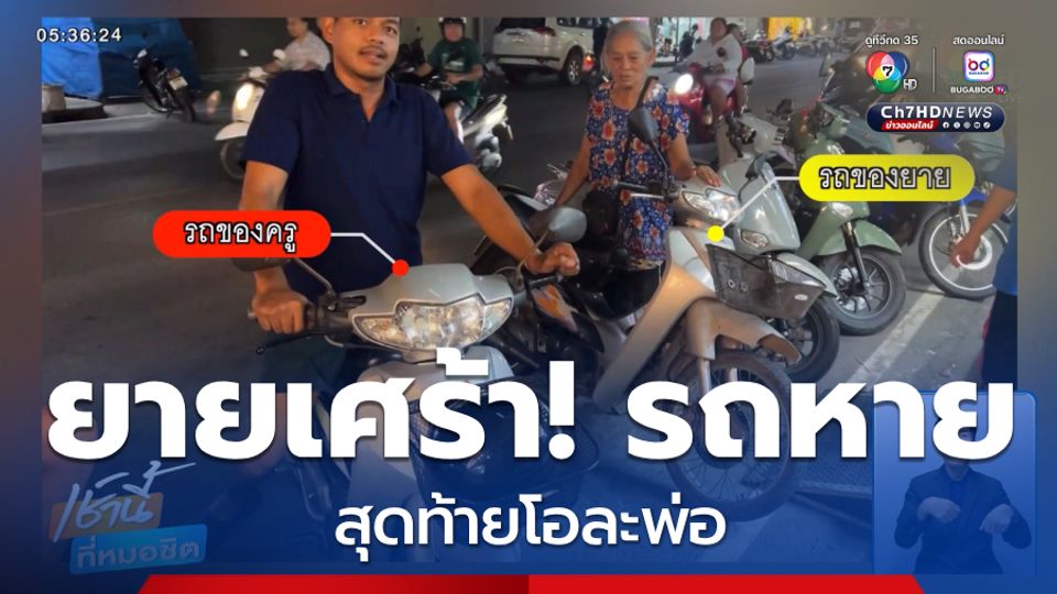 เช้านี้ที่หมอชิต - ยายพาหลานขี่รถจักรยานยนต์มาจ่ายตลาด พอจ่ายตลาดเสร็จปรากฏว่ารถหาย สุดท้ายจะได้รถคืนหรือไม่ แต่ที่แน่ ๆ งานนี้ต้องถึงมือตำรวจ