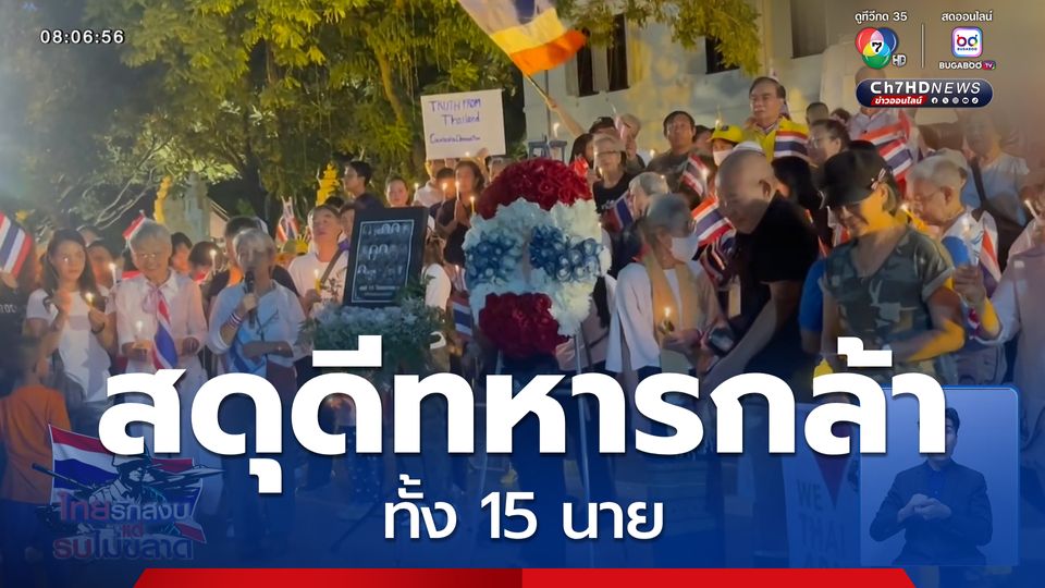 สนามข่าว 7 สี - ชาวไทยทุกหมู่เหล่า ร่วมส่งสิ่งของและปัจจัยที่จำเป็นให้กับนักรบแนวหน้า ในภารกิจปกป้องอธิปไตยไทย และที่เราทุกคนไม่ควรลืม คือ ความเสียสละของทหารกล้าทั้ง 15 นาย