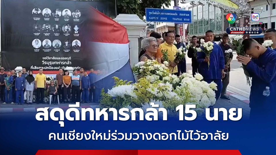 คนเชียงใหม่ร่วมวางดอกไม้แสดงความไว้อาลัยและสดุดีวีรกรรมทหารกล้า 15 นาย ที่สละชีพปกป้องประเทศชาติในเหตุการณ์ปะทะกับทหารกัมพูชาในพื้นที่ชายแดน