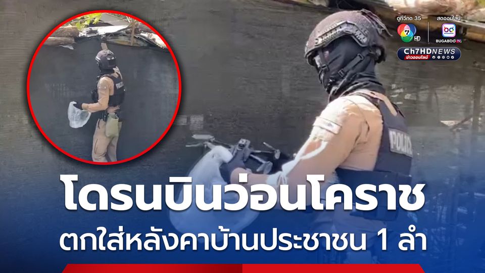 โดรนปริศนาเกือบ 30 ลำ บินเหนือลำตะคองใกล้พื้นที่ทหาร ก่อนพบตกใส่หลังคาบ้านประชาชน 1 ลำ