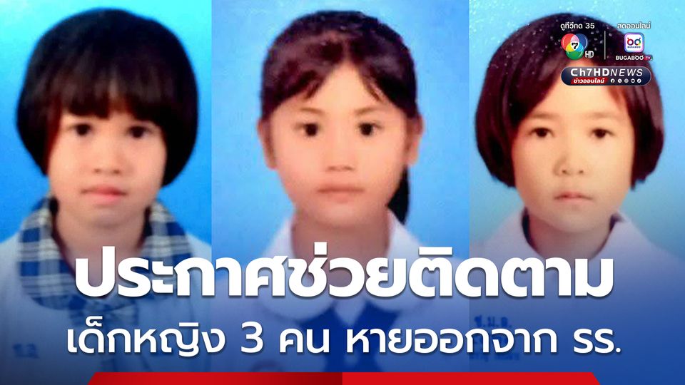 ประกาศช่วยติดตาม เด็กหญิง 3 คน หายออกจากหอนอนโรงเรียนราชประชานุเคราะห์ 30 ที่ อ.แม่อาย จ.เชียงใหม่ ในช่วงเวลาประมาณ 01.00 น.วันที่ 3 ส.ค.68 ล่าสุด ยังไม่พบตัวเด็กทั้ง 3 คน