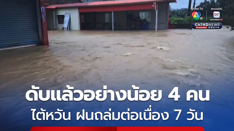 ไต้หวันเผชิญน้ำท่วมหนัก ฝนถล่มต่อเนื่อง 7 วัน ปริมาณน้ำฝนเทียบเท่ากับฝนตกเฉลี่ยตลอดทั้งปี มีผู้เสียชีวิตแล้วอย่างน้อย 4 คน และประชาชนต้องอพยพอีกเกือบ 6,000 คน
