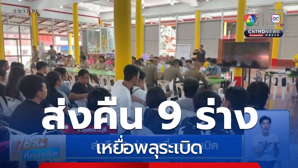 ช่วงบ่ายวานนี้ (4 ส.ค.) ที่วัดโพธิ์ท่าทราย อำเภอเมืองสุพรรณบุรี ซึ่งถูกตั้งเป็นศูนย์บัญชาการเหตุการณ์พลุระเบิด มีครอบครัวและญาติผู้เสียชีวิตทั้ง 9 คน มายืนยันผลตรวจดีเอ็นเอ การตรวจพิสูจน์เอกลักษณ์ การรับฟังผลชันสูตร ตลอดจนดำเนินการออกใบมรณบัตร