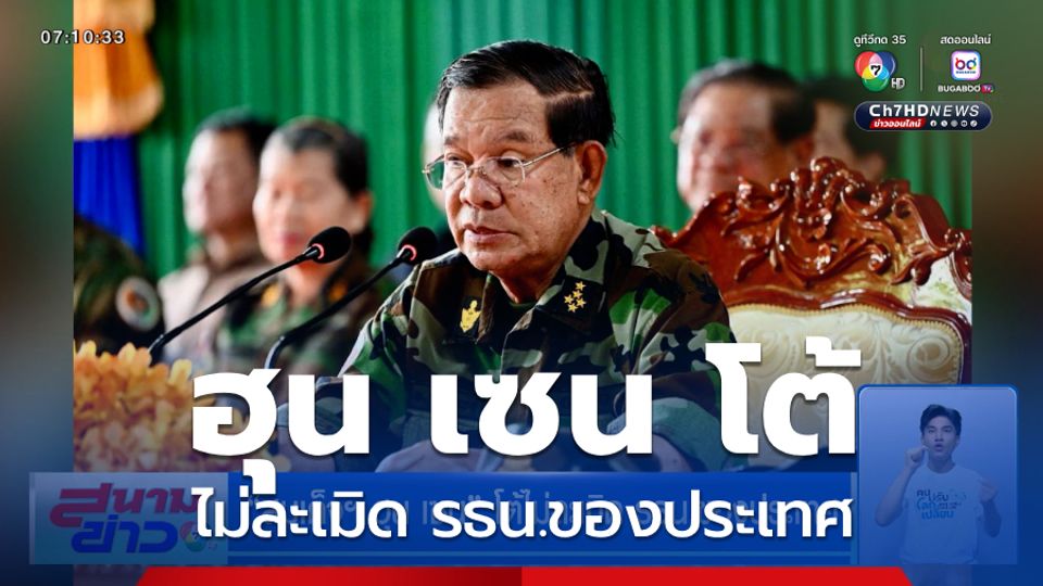 สนามข่าว 7 สี - สมเด็จฯ ฮุน เซน โพสต์โต้ปมวิจารณ์จากไทย อ้างพระมหากษัตริย์ มอบอำนาจคุมกองทัพ หลังนักวิชาการเปิดข้อต่อสู้ฝั่งไทย ชี้ ฮุน เซน และ ฮุน มาเน็ต ละเมิดกฎหมายรัฐธรรมนูญของประเทศตัวเอง