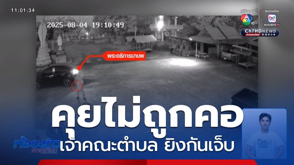 ห้องข่าวภาคเที่ยง - เจ้าคณะตำบล 3 รูป ในจังหวัดเลย ตั้งเก้าอี้คุยกันหน้ากุฏิ แต่ไม่รู้สาเหตุใดทำให้ เจ้าคณะตำบลเขาแก้ว เขต 2 บันดาลโทสะหยิบปืนมายิงใส่เจ้าคณะตำบลจอมศรี อำเภอเชียงคาน บาดเจ็บ ก่อนจะขับรถหลบหนีไปพร้อมอาวุธปืน ไปดูภาพขณะเกิดเหตุ