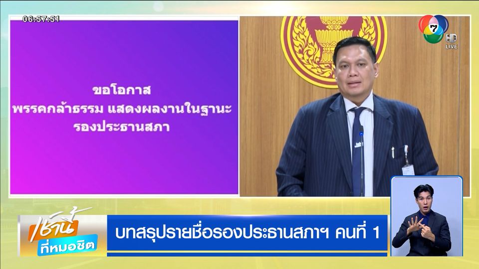 เช้านี้ที่หมอชิต - ประเด็นร้อนเกี่ยวกับตำแหน่ง "รองประธานสภาฯ คนที่ 1" ซึ่งว่างลงหลังจากที่ นายพิเชษฐ์ เชื้อเมืองพาน ต้องพ้นสมาชิกภาพหลังมีคำวินิจฉัยของศาลรัฐธรรมนูญ โดยทีแรกพรรคกล้าธรรม ได้มีการโพสต์ขอให้พิจารณาคนจากพรรคกล้าธรรมบ้าง เพราะมีคนที่มีความรู้ความสามารถเช่นเดียวกัน