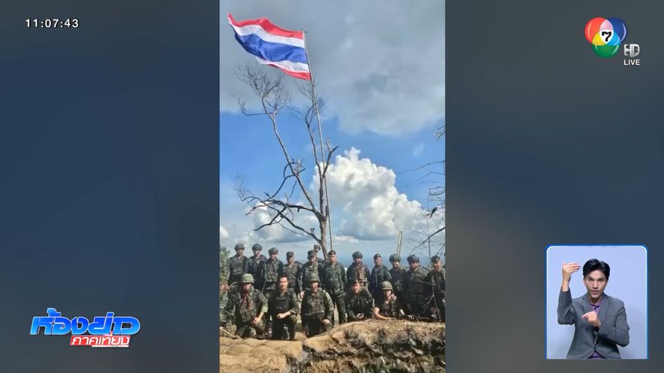 ห้องข่าวภาคเที่ยง - แม่ทัพภาค 2 ขึ้นภูมะเขือ จังหวัดศรีสะเกษ ให้กำลังใจกำลังพลที่ปฏิบัติหน้าที่ พร้อมกับมอบธงชาติผืนใหม่ ใหญ่กว่าเดิม นำร้องเพลงชาตินำธงชาติขึ้นสู้ยอดเสา