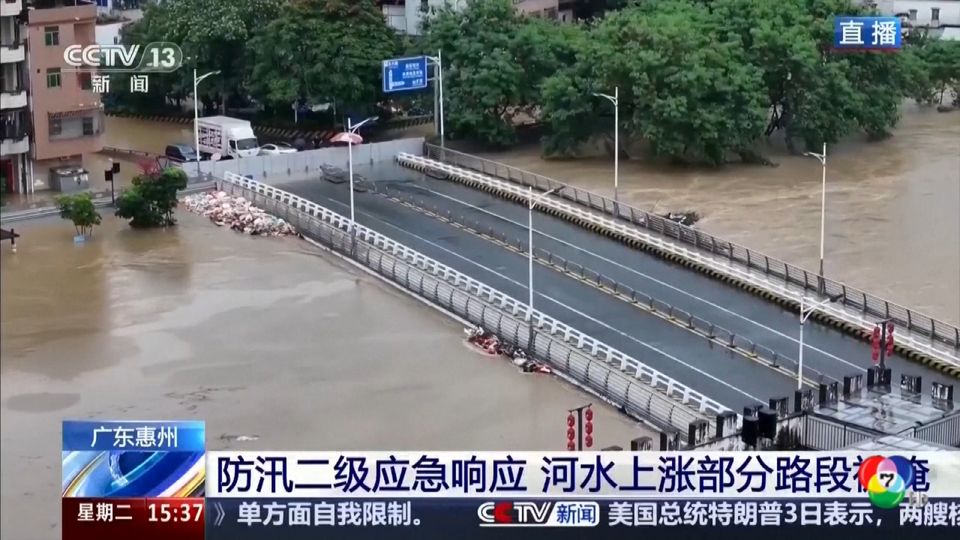 ฝนที่ตกหนักต่อเนื่องโดยเฉพาะที่เขตฮุ่ยหยาง มณฑลกวางตุ้ง ทางตอนใต้ของจีน ซึ่งมีปริมาณน้ำฝนมากถึง 156 มิลลิเมตร ภายในเวลาเพียง 24 ชั่วโมง ทำให้เกิดน้ำท่วมฉับพลันเป็นวงกว้าง ถนนสายต่าง ๆ แปรสภาพเป็นแม่น้ำ ทางการต้องแจ้งเตือนภาวะฉุกเฉินระดับ 2 พร้อมตั้งกำแพงป้องกันน้ำจากแม่น้ำ 4 สายหลัก ที่อยู่ในระดับสูงจนวิกฤต ไม่ให้ไหลเข้าสู่เขตตัวเมือง และมีการอพยพประชาชนกว่า 7,500 คน ออกจากพื้นที่ลุ่มต่ำ