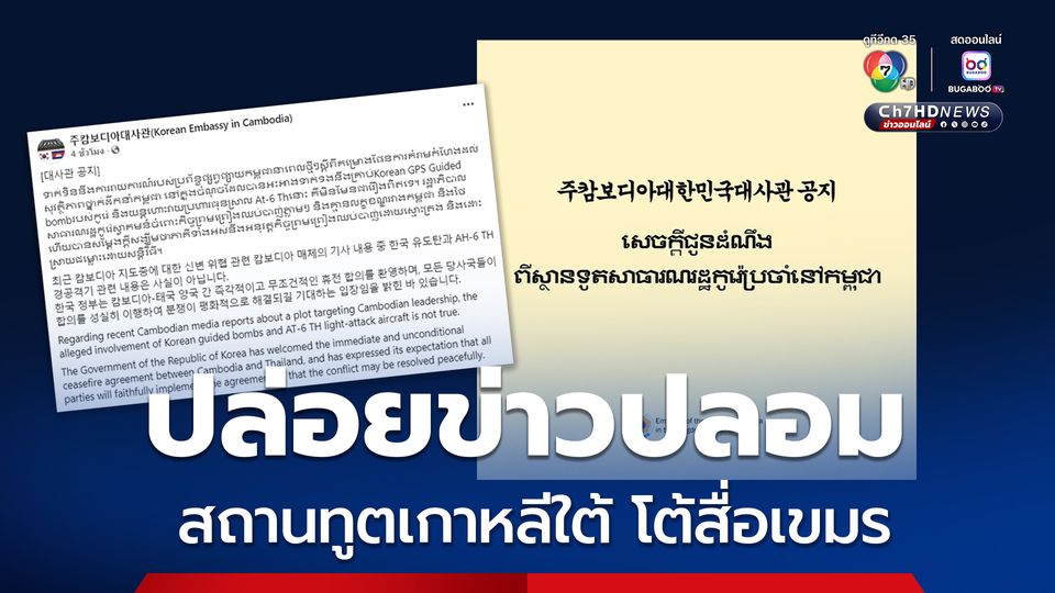 สถานทูตเกาหลีใต้ในกัมพูชา โต้สื่อเขมร ปล่อยข่าวปลอม ยืนยัน ไม่ได้ขายขีปนาวุธนำวิถีและเครื่องบิน AT-6 ให้ไทย