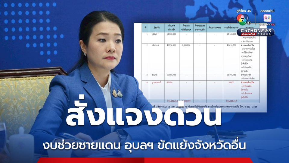 วันนี้ (6 ส.ค.68) เพจเฟซบุ๊กพรรคเพื่อไทย โพสต์ข้อความ ระบุว่า น.ส.ธีรรัตน์ สำเร็จวาณิชย์ รัฐมนตรีช่วยว่าการกระทรวงมหาดไทย เปิดเผยว่า ได้รับรายงานตัวเลขการเบิกจ่ายงบประมาณเพื่อช่วยเหลือประชาชนที่ได้รับผลกระทบจากเหตุปะทะบริเวณชายแดนในหลายจังหวัดภาคตะวันออกเฉียงเหนือ โดยพบว่า จังหวัดอุบลราชธานี ซึ่งเป็นหนึ่งในพื้นที่ที่ได้รับผลกระทบอย่างมาก มีการเบิกจ่ายเพียง 55,600 บาท ขณะที่จังหวัดใกล้เคียงอย่างจังหวัดสุรินทร์ มีการเบิกจ่ายสูงถึง 55.1 ล้านบาท, ศรีสะเกษ 46.8 ล้านบาท และบุรีรัมย์ 14.1 ล้านบาท