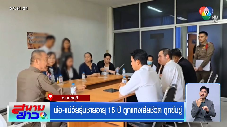 สนามข่าว 7 สี - แม่ของวัยรุ่นอายุ 15 ปี ที่ถูกแทงเสียชีวิต เข้าร้องกับประธานศูนย์ยุติธรรมเทศบาลเมืองบางศรีเมือง ให้ช่วยติดตามความคืบหน้าคดีลูกชาย หลังถูกฝั่งคู่กรณีโพสต์ข่มขู่ผ่านโซเชียล