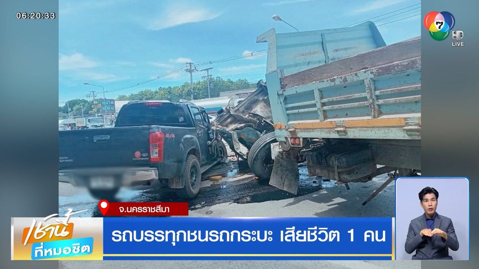 รถบรรทุกชนรถกระบะ เสียชีวิต 1 คน จ.นครราชสีมา