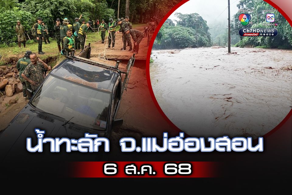 “แม่ฮ่องสอน” ฝนตกหนัก “น้ำหลาก” ซัดคอสะพานพังเสียหาย รถตกลงไป “ท้องถิ่น-ทหาร” ระดมกำลังให้ความช่วยเหลือ