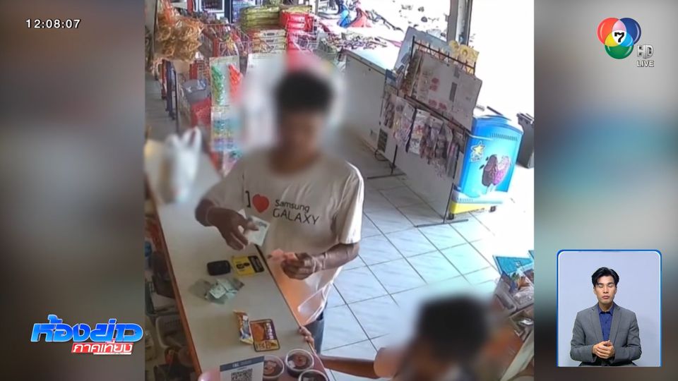 ห้องข่าวภาคเที่ยง - คนร้ายมีอาการมึนเมา พยายามตีสนิทเด็ก เข้ามาลูบหัว กอด แล้วหยิบแบงก์ร้อยของเด็ก กับเงินทอนที่เจ้าของร้านทอนให้เด็กไปอีก จากนั้น ชายคนร้ายก็ยืนหัวเราะ ก่อนที่จะออกจากร้านไป