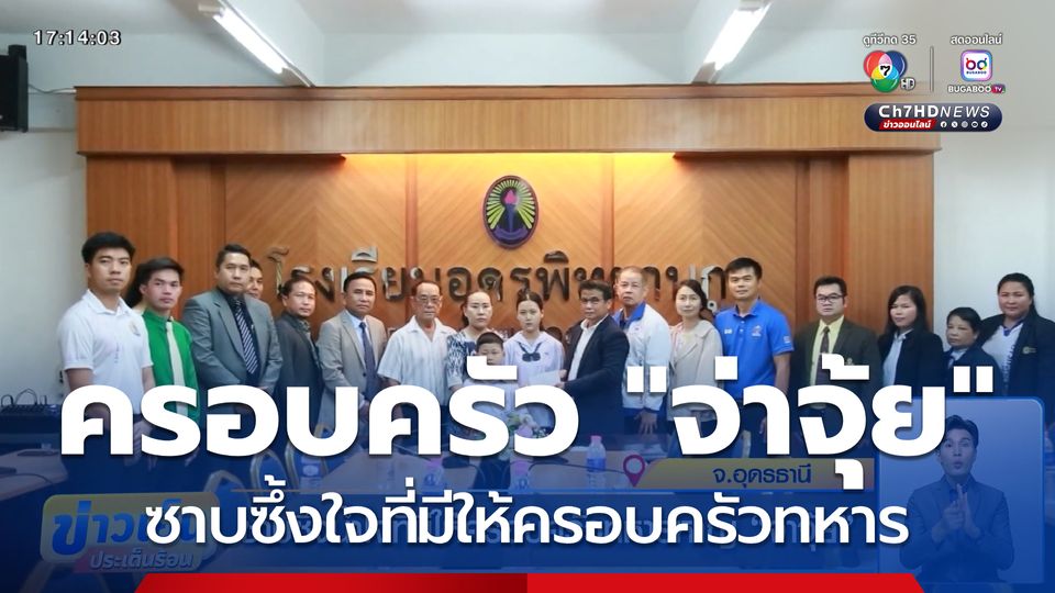 ข่าวเย็นประเด็นร้อน - ครอบครัวของ "จ่าจุ้ย" ซาบซึ้งใจที่บุตร-ธิดา ได้รับทุนการศึกษา ช่วยเหลือเยียวยาหลังจากที่ต้องสูญเสียเสาหลักของบ้าน ไปจากเหตุปะทะสถานการณ์ชายแดนไทย-กัมพูชา