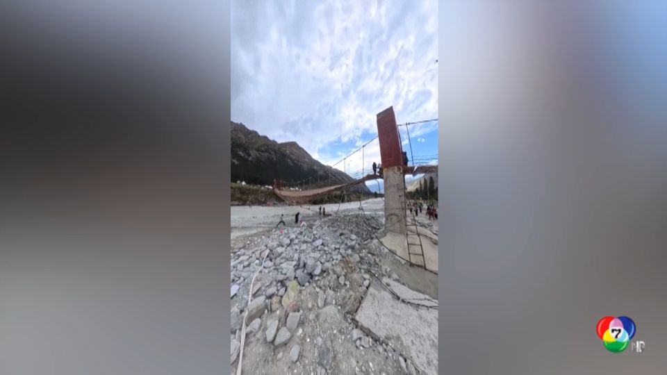 เกิดเหตุสายเคเบิลสะพานแขวนขาด ทำให้สะพานพลิกจนนักท่องเที่ยวตกกระแทกหิน เสียชีวิต 5 คน ในเขตปกครองตนเองซินเจียงอุยกูร์ของจีน