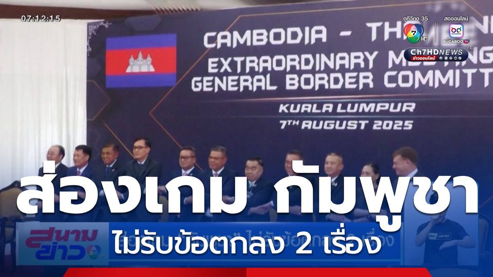 สนามข่าว 7 สี - มติ GBC ไทย-กัมพูชา ที่แม้จะลงนามบันทึกข้อตกลงร่วมกันไปแล้ว แต่ก็มี 2 เรื่องใหญ่ ๆ ที่กัมพูชาไม่ยอมรับ ทั้งการเก็บกู้ทุ่นระเบิด และปราบปรามแก๊งคอลเซนเตอร์ เพราะอะไร 2 เรื่องนี้ถึงยังต้องรอเคาะครั้งหน้า หลังจากนี้ไทยต้องอยู่อย่างไร โดยเฉพาะคนในพื้นที่ชายแดน