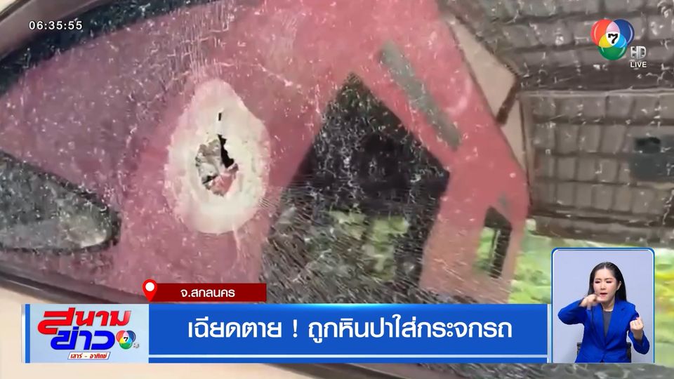 สนามข่าวเสาร์-อาทิตย์ - หนุ่มขับรถเก๋งพาแฟนสาวกลับบ้านต่างจังหวัด ถูกมือมืดดักปาหินใส่กระจกรถแตก เคราะห์ดีแฟนสาวเอนเบาะนอน จึงรอดหวุดหวิด