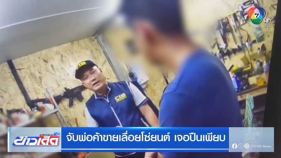 ข่าวเด็ด 7 สี - ตำรวจสอบสวนกลาง และตำรวจไซเบอร์ สนธิกำลังไปจับกุมผู้ลักลอบขายเลื่อยยนต์ไฟฟ้าผิดกฎหมาย แต่ระหว่าการตรวจค้นไปพบปืนไทยประดิษฐ์หลายกระบอก