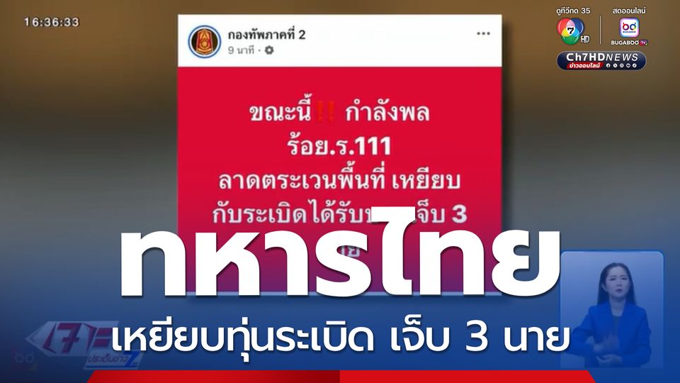 เจาะประเด็นข่าว 7HD - ข่าวใหญ่วันนี้ ทหารไทยเหยียบทุ่นระเบิดบาดเจ็บ 3 นาย ขณะที่เดินลาดตระเวนบริเวณรอยต่อโดนเอาว์-กฤษณา พร้อมกับเปิดภาพหลักฐานที่ฝ่ายกัมพูชาละเมิดอนุสัญญาออตาวา