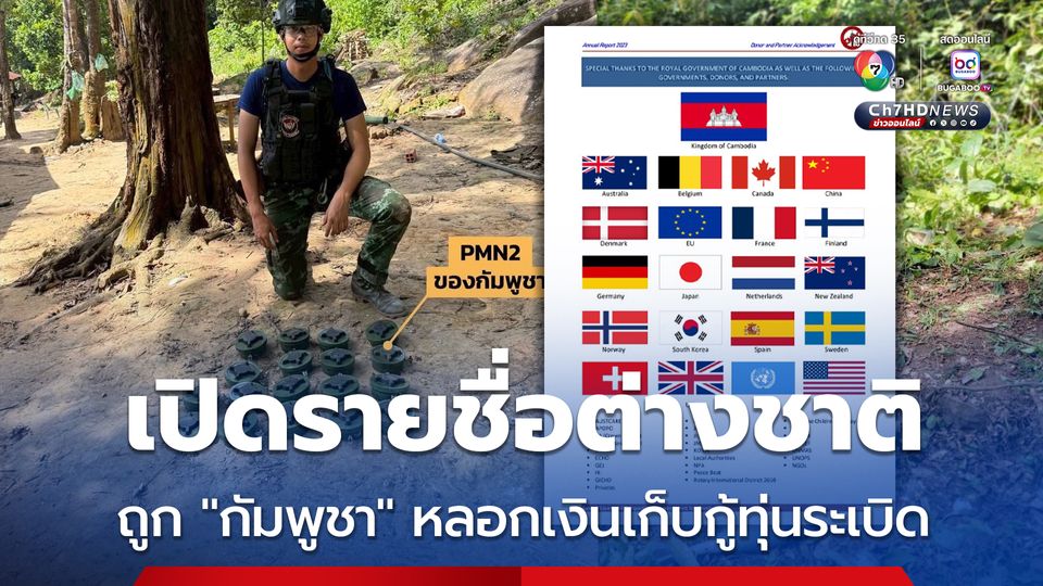 ทั้งนี้ กองทัพบก ได้อ้างอิงถึงชื่อประเทศและองค์กรที่สนับสนุนเงิน และ เจ้าหน้าที่ ในการเก็บกู้ระเบิดในกัมพูชา จาก Annual report 2023 ของศูนย์ปฏิบัติการต่อต้านทุ่นระเบิดแห่งชาติกัมพูชาด้วย